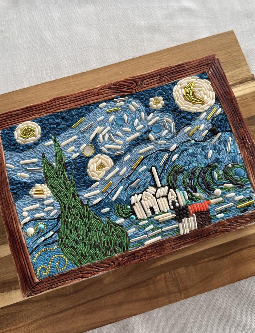 Prije nego što se baci na posao, Luce nekoliko sati proučava svaki detalj na slici, a priprema materijala potrebnog za rekreiranje umjetničkih djela može trajati od nekoliko dana do nekoliko tjedana. "Izrada same torte je najmanje zahtjevan dio s obzirom na to da tortu mogu napraviti i zavezanih očiju. Nakon toga slijedi jako dug proces slaganja perlica i to ovisi o kompleksnosti samog djela, no zasad nisam prošla s manje od 10 sati aktivnog rada", rekla je. Da bi svaka perlica bila na svom mjestu i što više nalikovala originalnom djelu, Luce prethodno detaljno prouči djelo te napravi mentalnu mapu gdje koja perlica ide.