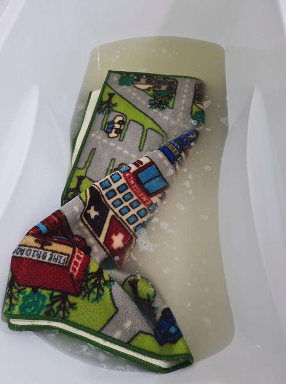 Ovaj poznati tepih za igranje u njezinu kućanstvu koristi se već 25 godina, a nakon što je već tjedan dana bila stalno u kući, odlučila ga je napokon oprati. Stavila je tepih u kadu punu vode i ostavila da se moči, ali brzo je ostala zgrožena rezultatima i prljavštinom koja se skupila u kadi.