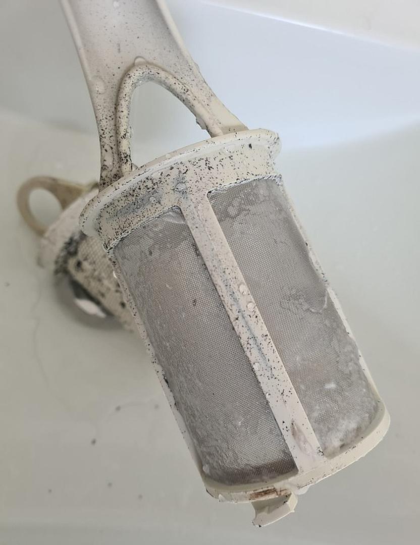 Jednom mjesečno dubinski očisti svoju perilicu rublja, ali ne i filter u njoj, što dovodi do nakupljanja prljavštine i plijesni. Zaprepaštena svojim otkriće, namočila je filter u alkoholnom octu te isprala hladnom vodom pa zatim ponovno namočila u tekućini za sterilizaciju.