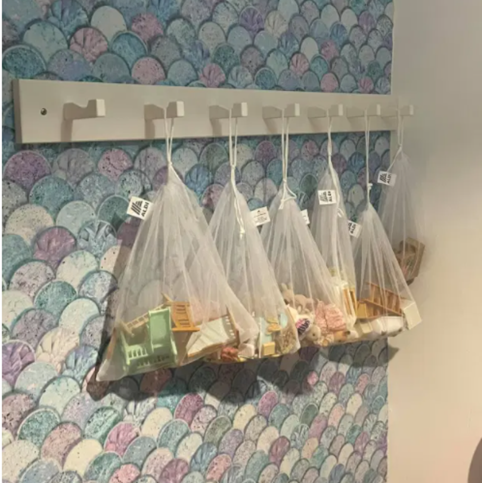 U grupi Extreme Couponing and Bargains UK objavila je fotografiju novog 'spremnika' za igračke. U IKEA robnoj kući kupila je vješalicu KUBBIS za malo više od 80 kuna, a u supermarketu mrežaste vrećice za par kuna. U vrećice jednostavno pospremi igračke i objesi ih kako više ne bi bile na podu.