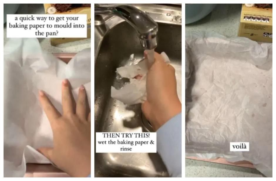 Prije nekoliko dana Belinda je otkrila kako si olakšati stavljanje papira za pečenje u posudu. Prvo je u grubo izrezala komad papira da prekrije posudu, a zatim ga zgužvala i namočila pod vodom. Lagano ga procijedi kroz ruke i namjesti u posudu.