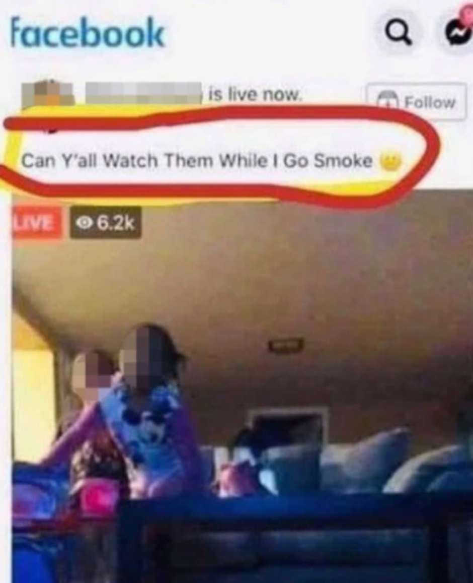 Nepoznata mama šokirala je korisnike društvene mreže Facebook nakon što je pokrenula live prijenos, a zatim zamolila prijatelje da nadgledaju što djeca rade - dok ona ode zapaliti cigaretu.