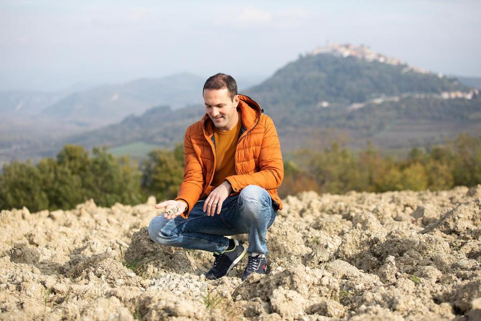 Bred se nalazi na 200 metara nadmorske visine i za proizvodnju grožđa je super to što se vinogradi nalaze na vrhu brda gdje je stalna cirkulacija zraka. Čak i ljeti, kad je vani 40 stupnjeva, uvijek puše lagani povjetarac koji tjera bolesti i ne dopušta da se u samom grožđu stvaraju gljivice. Tlo je ilovača s dosta lapora – glina koja izgleda kao kamen, a u ruci se mrvi poput praha. Ovo iverasto, laporasto tlo puno je onih mineralnih i zelenih nota što se prepoznaju u malvaziji i teranu i po čemu smo drugačiji od svih drugih položaja u Istri. Nema svugdje tog lapora u zemlji. Dio terena pripremamo za malvaziju, a dio za merlot. Na ovoj poziciji nekad su bili vinogradi koji su davno izvađeni pa se nakon toga uzgajala pšenica, kukuruz... 2017. sve sam prekopao i krenuo malo po malo saditi vinograde. Laganim tempom jer puštam zemlju da se odmara. Trenutačno radimo meliorativnu gnojidbu tamo gdje treba da bismo ojačali organske spojeve u tlu. Kupili smo zemlju prije neke četiri godine, proizveli smo vino ali ga nismo stavili u prodaju. Ništa dok ne otvorimo novi podrum. Od ovog vinograda tek ćemo 2025. godine imati prvu zaradu. Treba puno vremena za stvoriti priču i pravo vino. Imamo vinograd, imamo odlično tlo i klimu ali opet treba proći par godina, par berbi u podrumu da biste bili sigurni da je to dobro.