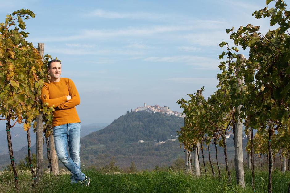 To će biti prostor za degustacije, zapravo već smo ovdje odradili jedan Wine & walk, a radimo i degustacije za manja društva, ali treba to još urediti. Šteta je ne pokazati ovo ljudima. Kad se okrećete oko svoje osi možete vidjeti Špinovce, Rakotule, Vižinadu, Gržnjan, Kostajnicu, Završje, Oprtalj, Istarske toplice, dolinu rijeke Mirne, motovunsku šumu, Sovinjak, Motovun, Šublentu, Zamask. Usto što je ovo izvrsna pozicija za vinograde upravo me pogled od 360 stupnjeva potaknuo da kupim ovu poziciju, a uzeli smo ispod još 2 hektara vinograda i odmah nam je tu i naš Flaminio. Ako tamo dolje daje super rezultate ovdje tek očekujemo senzaciju. Malo po malo ćemo pokušati spojiti brdo s ostalim vinogradima, napraviti jednu šetnjicu do nove vinarije da mogu naši gosti iz vinarije doći tu u vinograd i kušati vina ako žele, vratiti se u vinariju ili samo prošetati kroz vinograde. Imamo projekte za dugo vremena, ali već smo u 10 godina uspjeli puno napraviti, doći od 4 do 47 hektara. Ne bojimo se rada! Kad imate neki dobar rezultat to vas samo ponese dalje. Veći mi je gušt uzeti zemlju za koju znam da je na njoj neki moj predak ili susjed teško radio i nastaviti njegovim stopama. Želim biti tu i uživati u tome, žao mi je da sve ode na gradnju nekih vila i kuća za odmor. Kao klinac sam trčao po ovim vinogradima, vežu me neke lijepe uspomene uz njih. Ne želim da to zemljište ode u krive ruke. Moram biti tu gdje je tako lijepa zemlja.
