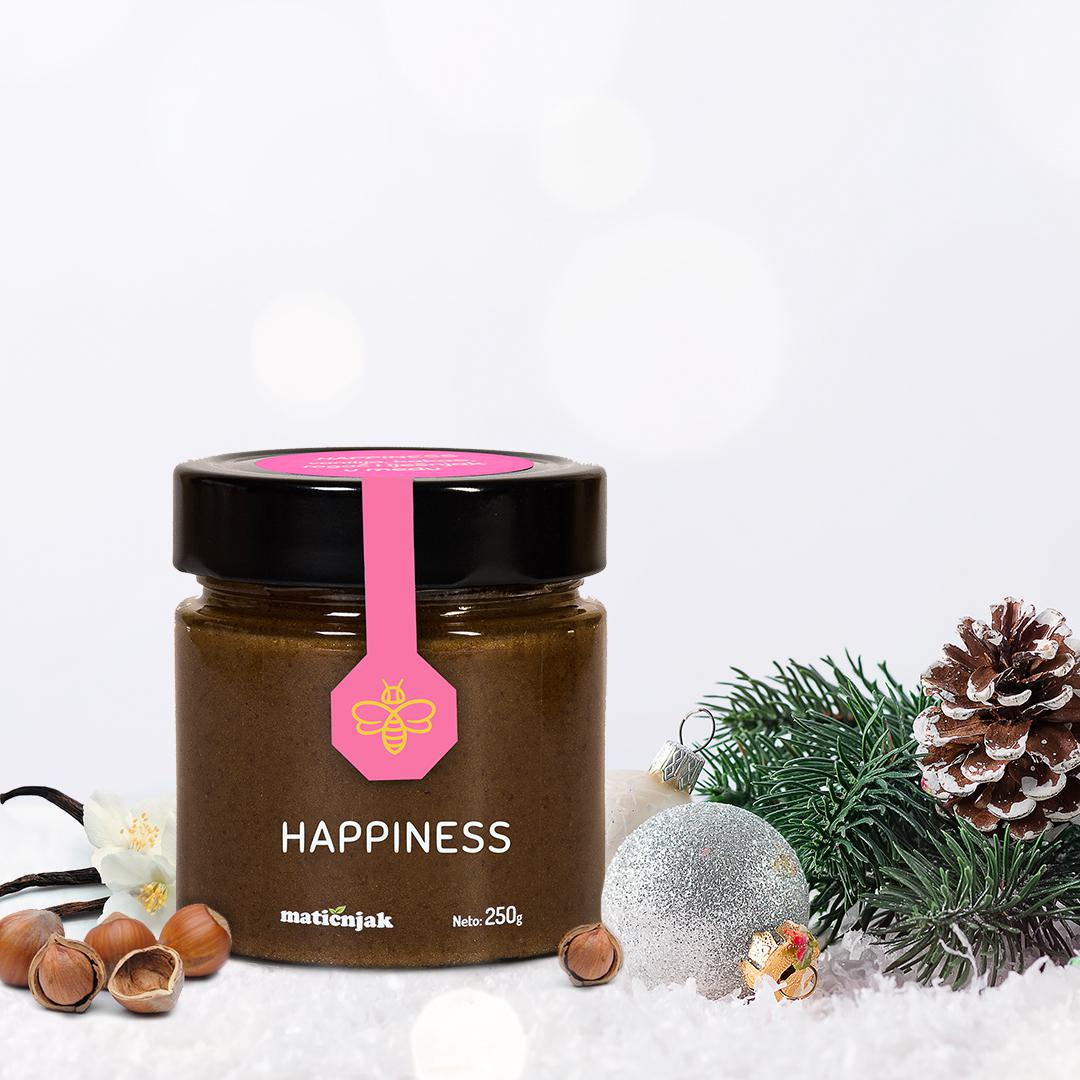 Happiness je savršena kombinacija eksplozije okusa za dobro raspoloženje, gorki kakao zaslađen medom te začinjen vanilijom i rogačem.