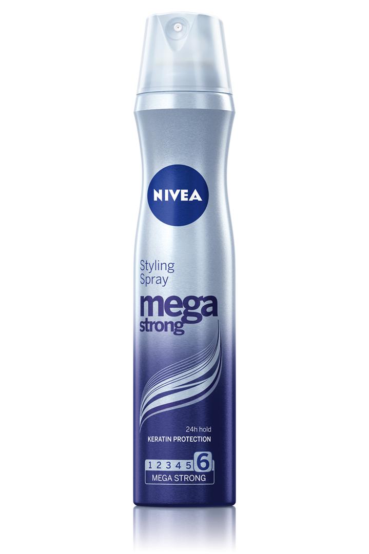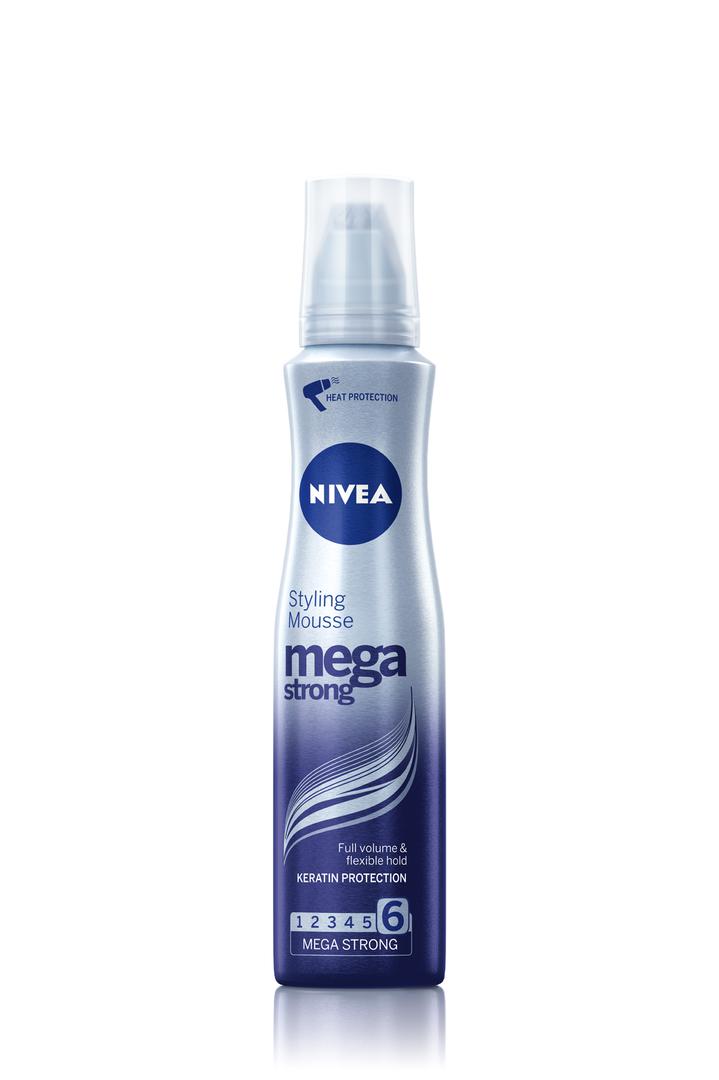 Jedinstvena formula nove NIVEA MEGA STRONG styling kolekcije nudi savršeno uravnoteženu kombinaciju sastojaka za učvršćivanje kose i esencijalnih vitamina za njegu koji daju kosi optimalan oblik. Posebno velika količina polimera pruža dugotrajnu čvrstoću i volumen, a da kosa pritom nije ljepljiva i teška. Učinkovit keratinski zaštitni sustav štiti kosu od oštećenja. Provitamin pantenol njeguje i štiti kosu od isušivanja, a učinkoviti UV filteri pomažu u zaštiti od sunca.
