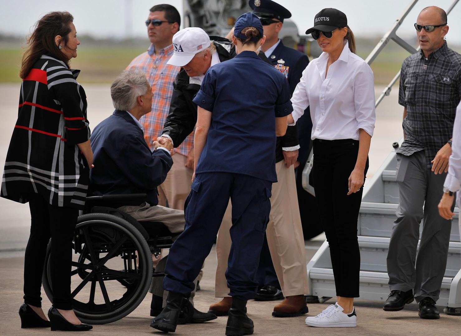 Melanija Trump izazvala je podsmijeh na internetu kada je u utorak ujutro izišla iz Bijele kuće u visokim potpeticama i avijatičarskim naočalama na put u Teksas pogođen katastrofalnim poplavama koje je izazvao uragan Harvey.