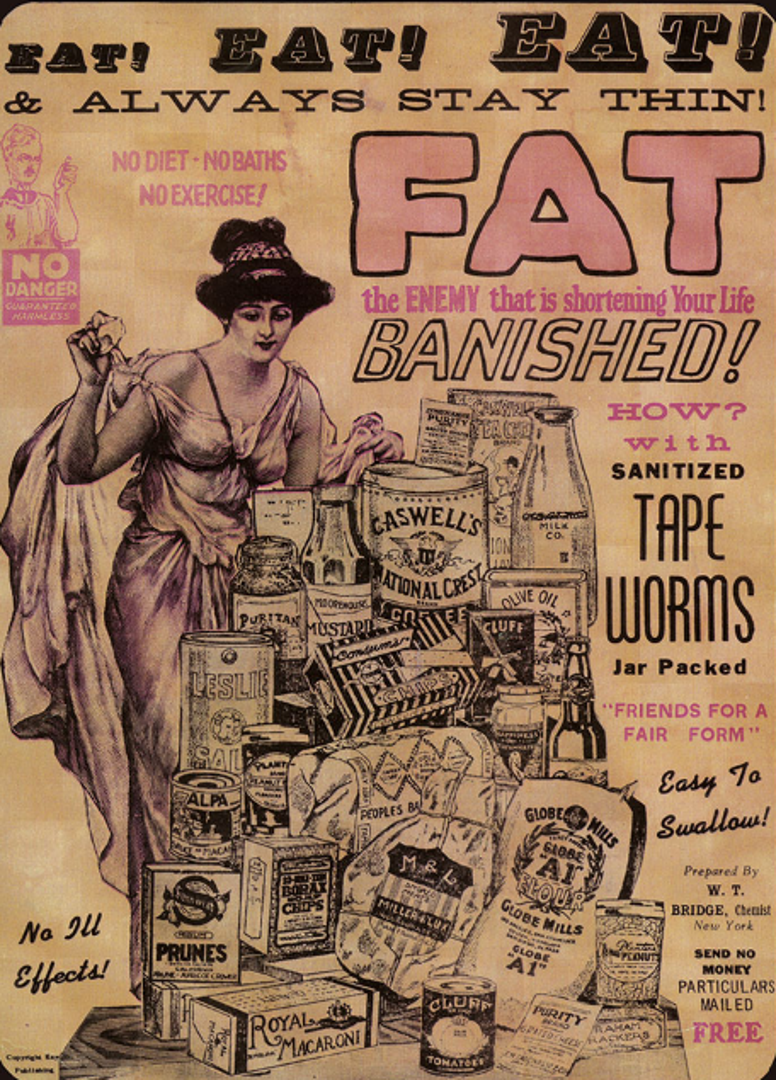 U viktorijansko doba ljudi su došli na krajnje bizarnu ideju za gubitak kilograma - konzumiranje trakavica. Osoba pojede jaje trakavice, a onda se paraziti razmnože u crijevima. Što god osoba pojede, izbaci velikom nuždom ili povraćanjem. Na taj način su ljudi mogli jesti što god su htjeli bez da nakupljaju neželjene kilograme. Iako se danas zna da trakavice u organizmu mogu biti opasne, a ponekad i završiti smrću, u nekim dijelovima svijeta ljudi i dalje gube kilograme ovom metodom.