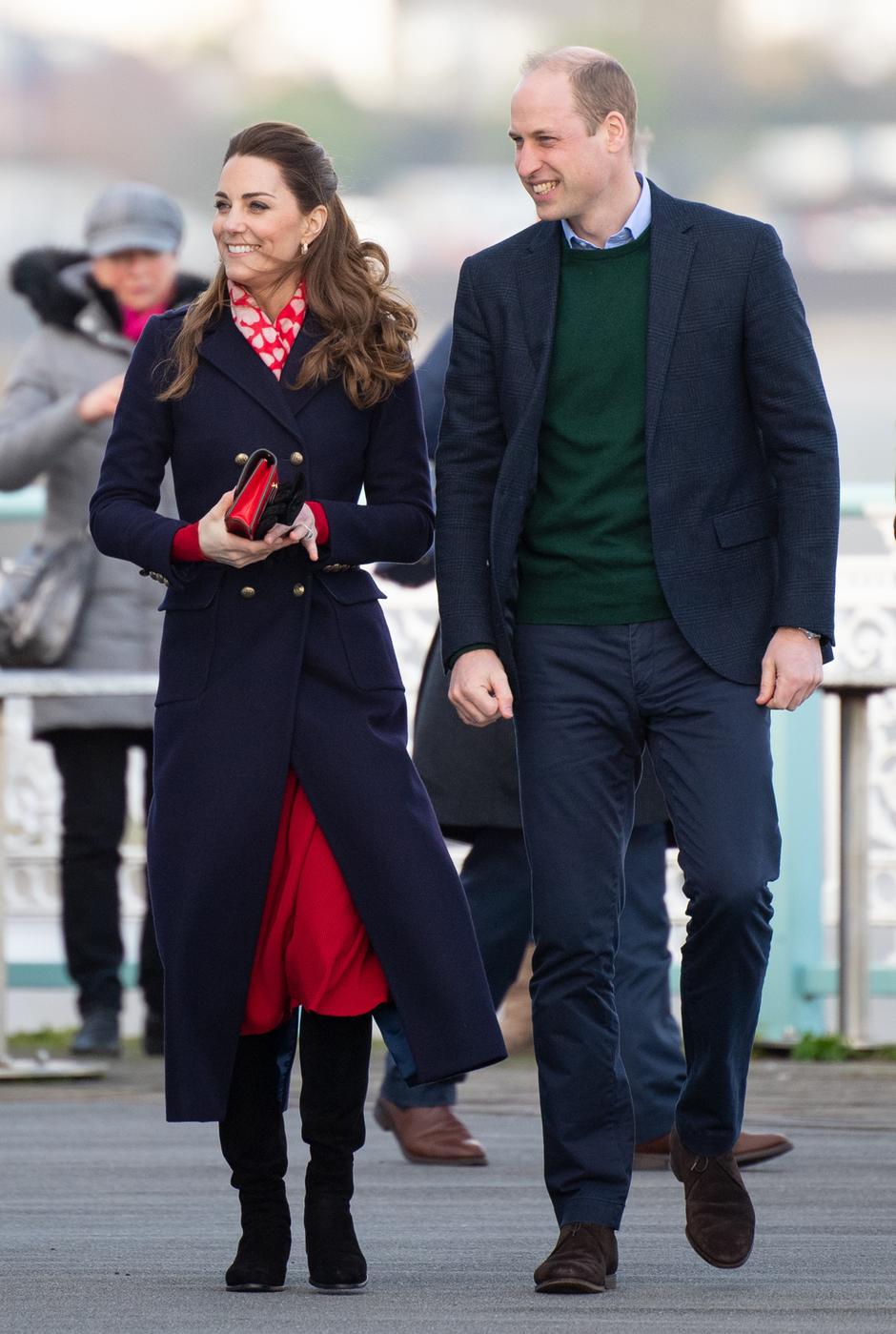 Umjesto "lijepe" haljine, Kate je odabrala dugački, mornarskoplavi kaput iz Hobbsa, čija je cijena oko 349 funti i kombinirala ga s crvenom pletenom haljinom iz Zare, visokim crnim čizmama, Mulberry torbom i Beulah maramom s uzorkom srca.