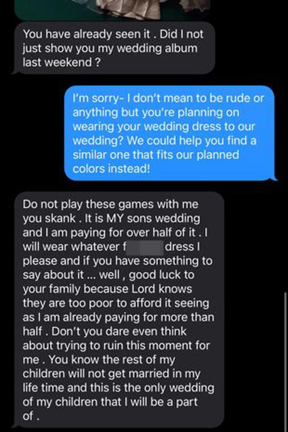 Pokušala joj je na pristojan način reći kako ne želi da na njezinom vjenčanju nosi vjenčanicu, ali je svekrva brzo izgubila svoje živce i poslala joj veoma gadnu poruku