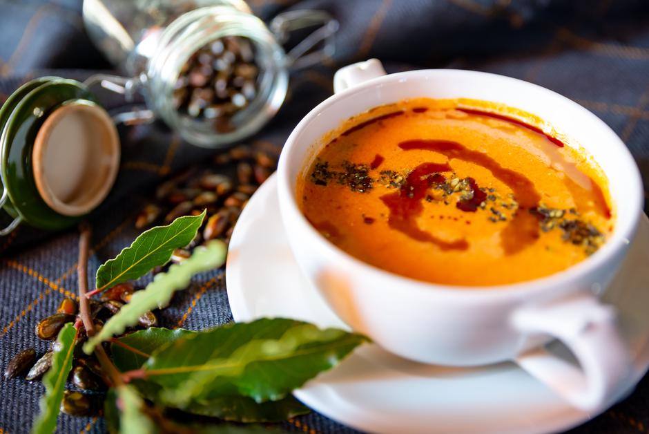 Pretepenu juhu u restoranu Terbotz serviraju u glinenim zdjelicama i poslužuju u kombinaciji s malim štruklima. Juhe nema bez malo kiselog vrhnja, komadića slanine i crvene paprike koja ovom blagom jelu daje intenzitet.