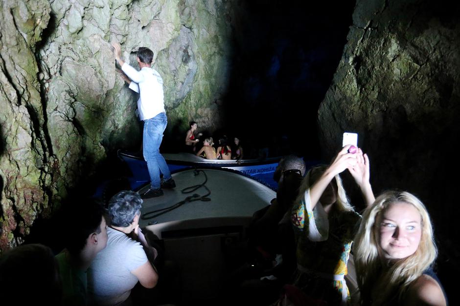 Bez obzira na to, nikad nije bilo više posjetitelja. Modra špilja je očito in, pravi je mamac za izletničke brodove u cijeloj Dalmaciji. U srpnju je Modru špilju posjetila i američka influencerica Sistine Stallone, kći Sylvestra Stallonea koji se s obitelji odmarao na Hvaru, a njen selfie iz Modre špilje na Instagramu, gdje ima 1,1 milijun pratitelja, lajkalo je 105.500 ljudi. Dočekali smo svoj red i ukrcavamo se u pasaru, a imamo sreće što će naš barkarijol biti najiskusniji vodič u Modru špilju – Franci Mardešić.