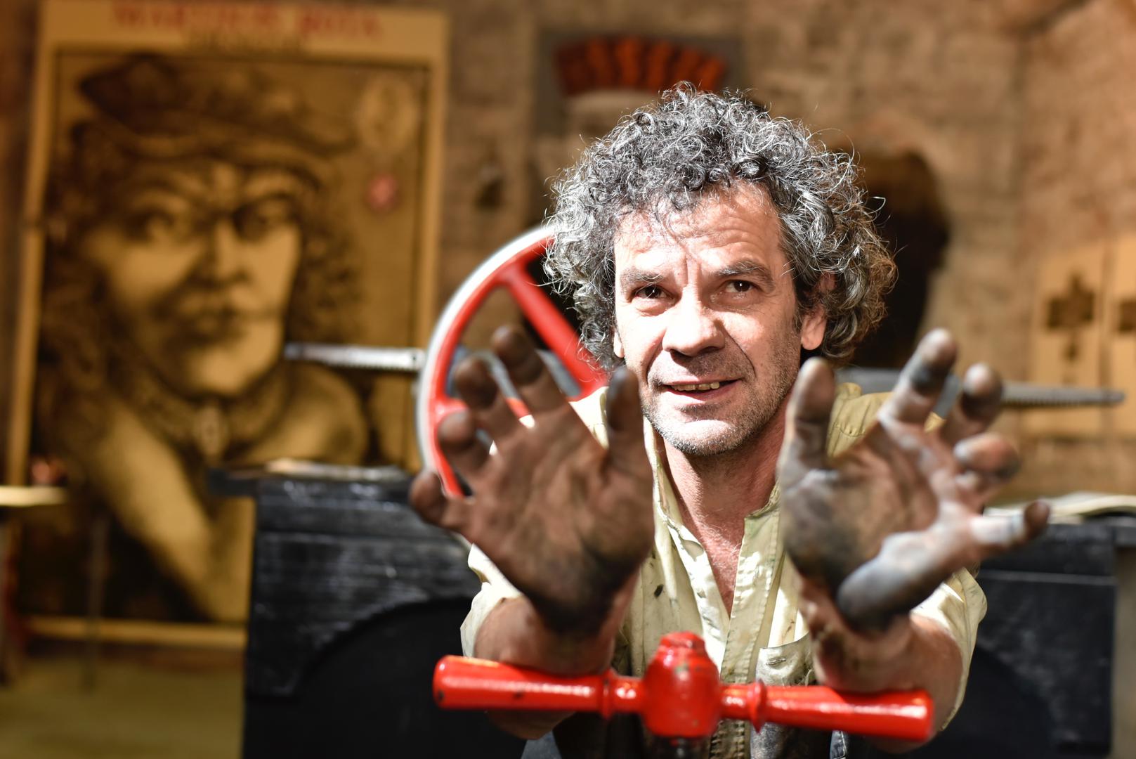 Život ga je nekako doveo ovamo, u stari magazin, podrum, šupu..., kakvih ima na stotine u Šibeniku. No ova blista. Preuredio ju je i ubacio – zvijezdu. Grafičku prešu, sličnu onoj na kojoj je 1455. Johannes Gutenberg tiskao Bibliju.