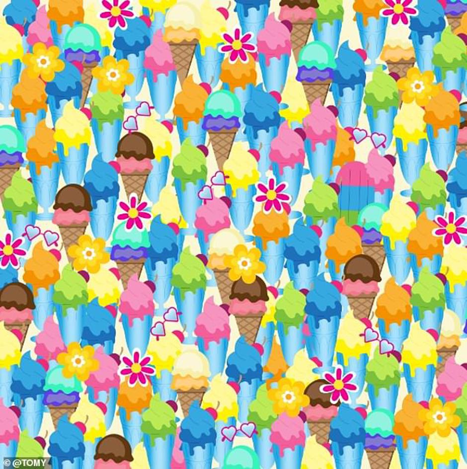 Jedna od takvih, upravo s motivima sladoleda i "ljetnim" bojama, objavljena je nedavno i ima zanimljiv zadatak: Među sladoledima u kornetu, pokušajte pronaći sladoled na štapiću.