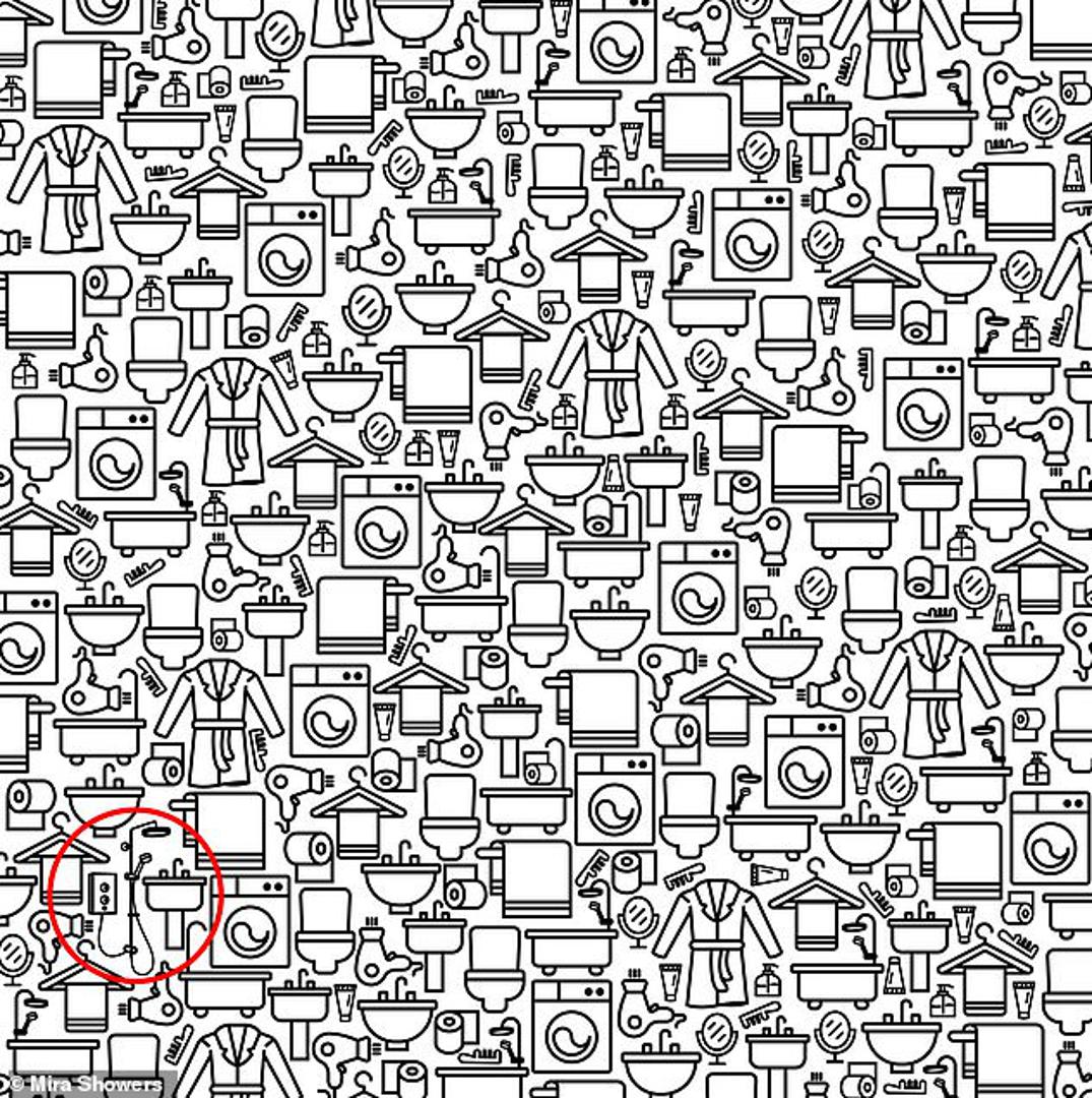 Zagonetku je napravila britanska tvrtka koja prodaje kupaonski namještaj Mira Showers, a potrebno je pronaći tuš među mnogo drugih predmeta koji se nalaze u kupaonici. Iz Mire kažu kako je prosječnoj osobi potrebno samo 23 sekunde da pronađe tuš. Možete li biti brži?