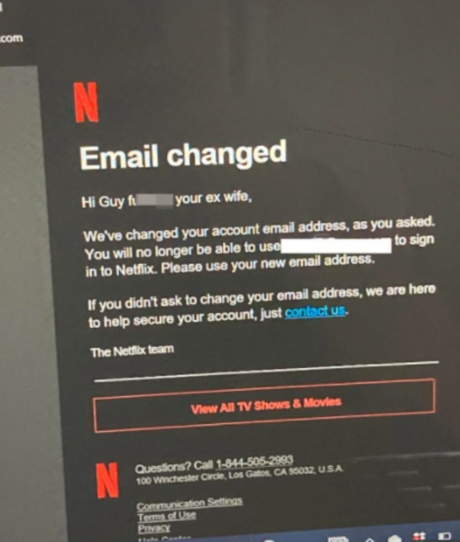 Htjela mu je to dati do znanja, pa je smislila moderan način. "Ne znam tko je jadniji, ona ili njezin novi tip. Još uvijek nismo službeno rastavljeni", napisao je i ispričao da je promijenila e-mail za prijavu na Netflix računu iz njegovog u onaj od ljubavnika, a kako bi mu se i on barem na neki način obratio, promijenio je korisničko ime koje je onda stajalo u službenoj poruci Netflix tima. "Bok, spavam s tvojom bivšom ženom."