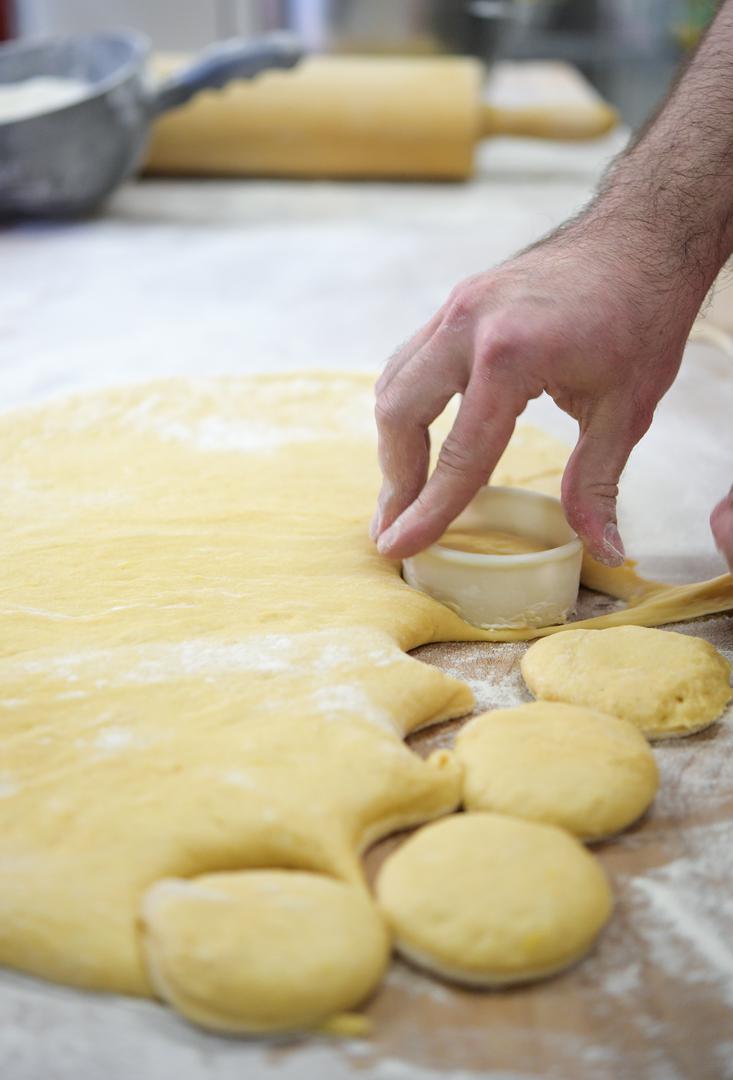 – Proizvodit ćemo ih još tjedan dana poslije Fašnika, a onda se ljudi polagano zasite. To vam je kao i s kestenom. Kad krene, svi ga žele jesti, a onda za tri tjedna nitko za kesten više uopće ne pita. Mi smo imali dosta pitanja oko krafni, a najvažnije nam je bilo da nam Luka otkrije sve trikove kako dobiti savršene krafne u kućnoj radinosti. To je poprilično zahtjevan zadatak te mnogi odustanu. – Mi ovdje imamo zatvorene sisteme i općenito je jako vruće u prostoriji pa nije problem ako se vrata otvaraju, ali kad radite doma, treba paziti na to da je u kuhinji toplo i da nema propuha. – Propuh ubija krafne? – pitamo. – Vama je sad veća briga da vi ne ubijete kvasac. Ne smijete pregrijati mlijeko jer kvaščeve gljivice umiru na visokim temperaturama. Morate paziti da vam se tijesto sjedini, da vam ne ostanu grudice u njemu – reterira Luka.