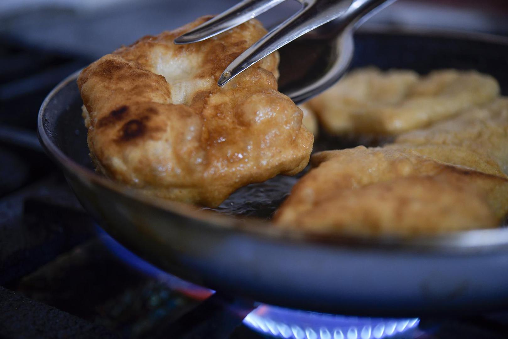 Pripremi tijesta za lepinjice treba posvetiti pažnju i vrijeme. Nije dovoljno jednom ga promijestiti nego to morate učiniti 4-5 puta. Svaki put kad ga promijesite pustite ga da se digne pokriveno krpom pa onda tek ponovite postupak. A kad je gotovo dizanje, razvaljajte ga i narežite na kvadrate koje obavezno treba u rukama rastegnuti prije nego ih bacite u vruće ulje. Ako to ne napravite, neće vam biti izvana fino hrskave, a iznutra lagane nego će iznutra ostati sirove, a to bi bila vječna šteta!
