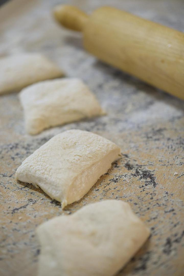 Od prosijanog brašna, kvasca i vode umijesite tijesto koje ne smije biti previše rijetko ni gusto – neka bude otprilike napola mekano. Stavite tijesto na stranu da se digne prekriveno krpom. Kad se digne, opet ga premijesite i stavite ponovo da se digne. Ovaj postupak morate ponoviti 4-5 puta. Tijesto mora biti fino izrađeno da se ne lijepi za ruke. Što ćete ga više puta mijesiti i pustiti da se diže, bit će bolje. Pospite radno površinu oštrim brašnom, tijesto izvadite na površinu i malo razvaljajte valjkom. Isijecite tijesto na kocke. Svaku razvucite prstima prije nego je bacite u vruće ulje.
