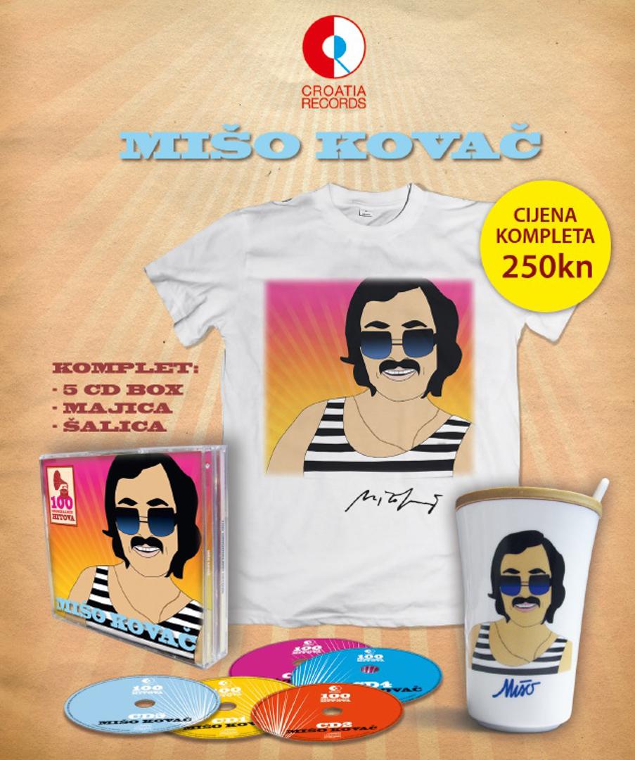 Osim toga, Croatia Records u svojoj ponudi ima kolekciju za prave ljubitelje ovog legendarnog pjevača. Komplet Mišo Kovač u kojem se nalazi CD box, majica i šalica s njegovim likom, a ovo može biti i idealan poklon za blagdane.