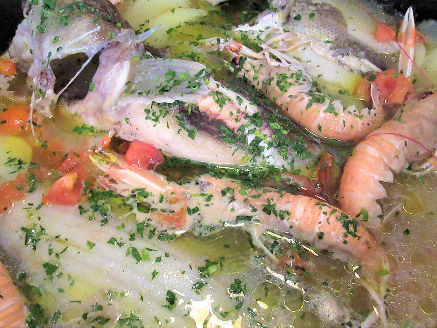 Na 1 dl maslinova ulja zazlatite 1 veću kapulu, 2 krumpira u komadima i 3 zgnječena režnja češnjaka, pa na tu posteljicu položite 1 kg ribe od kamena za kuhanje (po 1 većeg škarpuna, batofinu ili bežmeka te par komada repa od grdobine) Sve posolite i popaprite, ubacite 1 list lovora pa pokrijte ribu i povrće vodom i pustite da se kuha. Kad sve omekša i ugusti se, ubacite par škampi, prelijte s ½ dl bijeloga vina i pospite s malo sjeckanog korijandra, može i peršina ili petrusimula. Ovaj napuljski riblji lonac mora biti gušći od uobičajene riblje juhe.