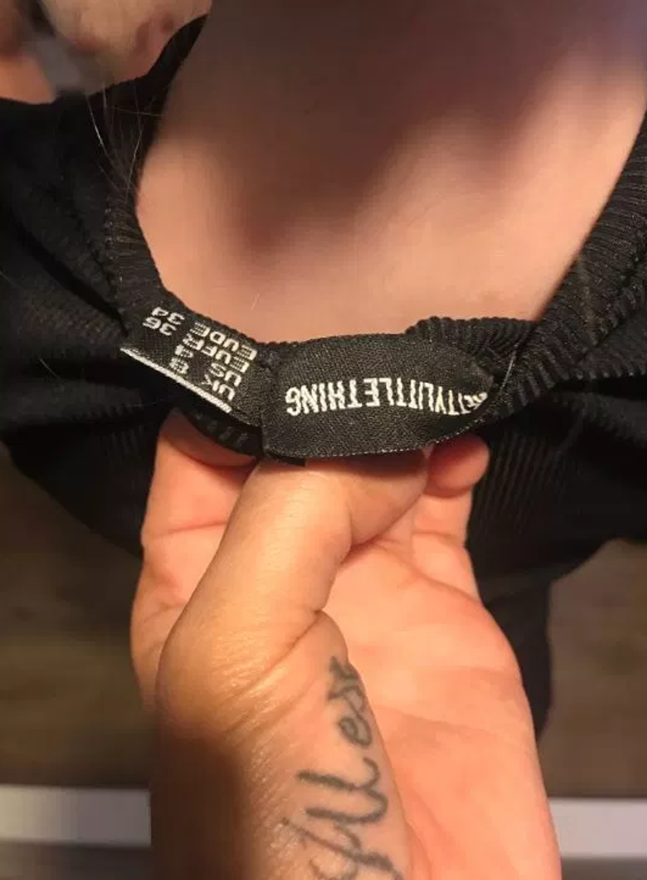 Ljutita Kirsty sve je fotografirala i podijelila na društvenim mrežama, a na haljini se jasno da iščitati konfekcijski broj 8 (36). Prvotno ju je mislila nositi kao majicu, no nije ju čak mogla prebaciti ni preko glave. Kirsty priznaje da joj je istodobno bilo smiješno to što njezinoj četverogodišnjoj kćeri pristaje kao salivena. Oko cijelog nesporazuma oglasili su se i iz brenda 'Pretty Little Thing'.