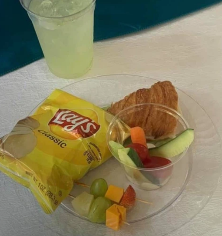 Ljuta djeveruša fotografirala je tanjur i objavila sve na Facebooku. "Ovo smo dobili za glavno jelo - čips, malo sirovog povrća, malo voća na štapićima i pola kroasana. Osim toga, cijela sala je izgledala neuredno. Strašno.", napisala je.