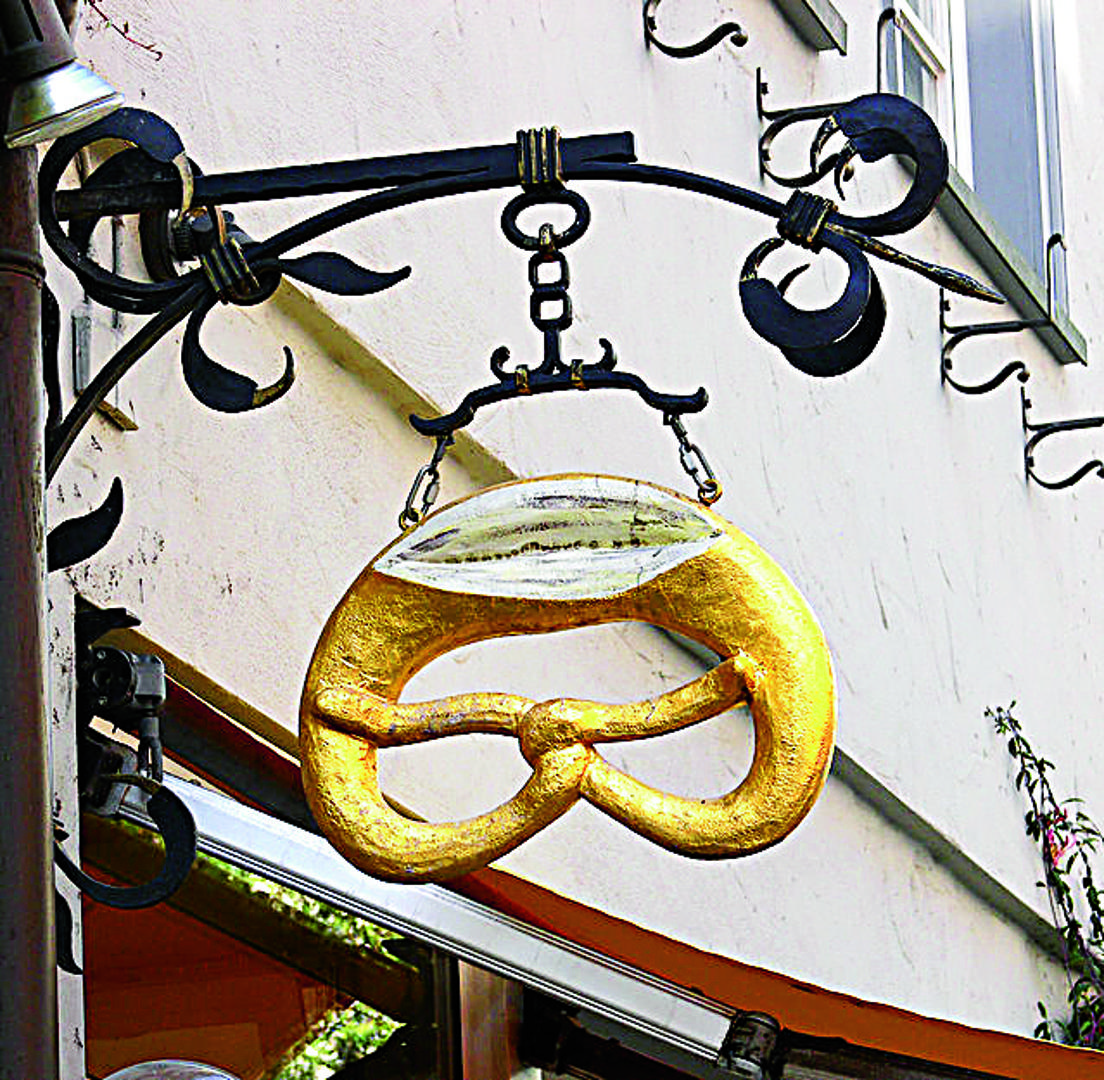 Perec kao prepoznatljivi pekarski znak na pročelju zgrade u njemačkom Ravensburgu