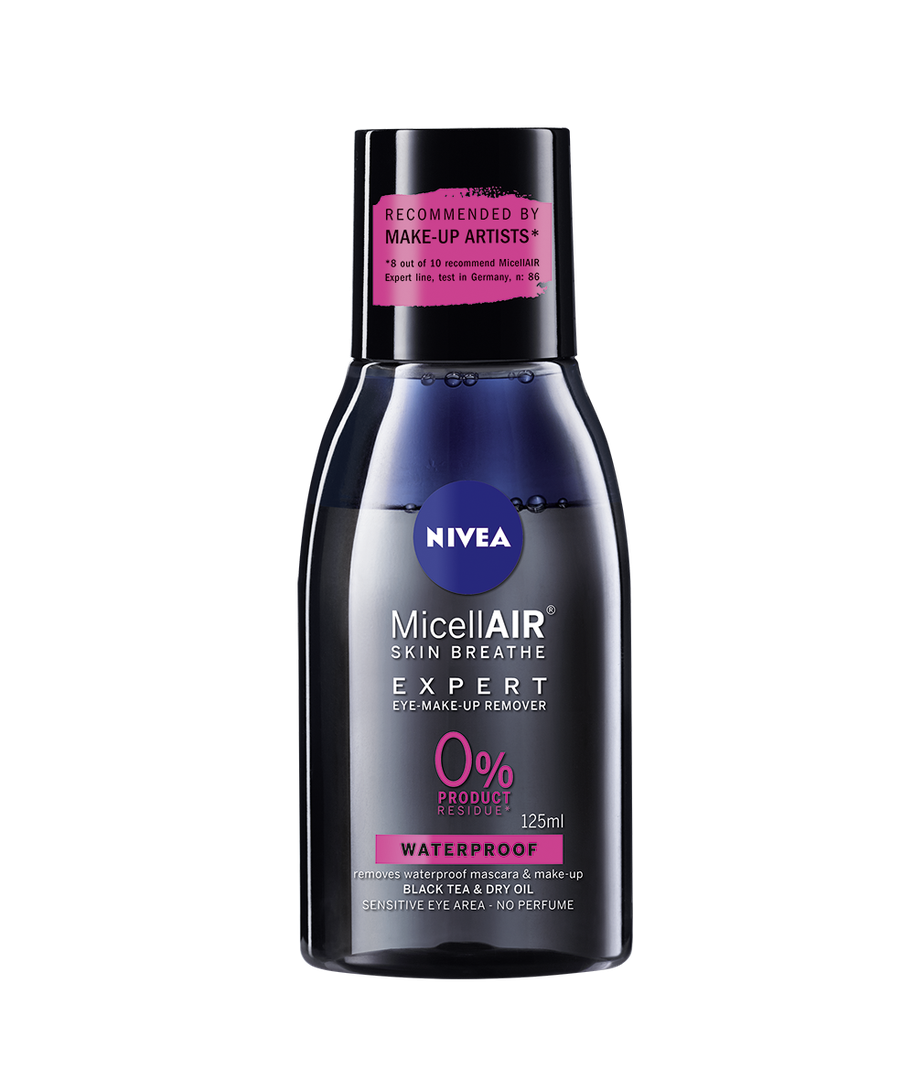 Tražite proizvod koji nježno, ali učinkovito uklanja čak i vodootpornu šminku za oči i maskaru bez iritiranja kože? Isprobajte NIVEA MicellAIR® Expert odstranjivač šminke kojeg vizažisti preporučuju s razlogom.