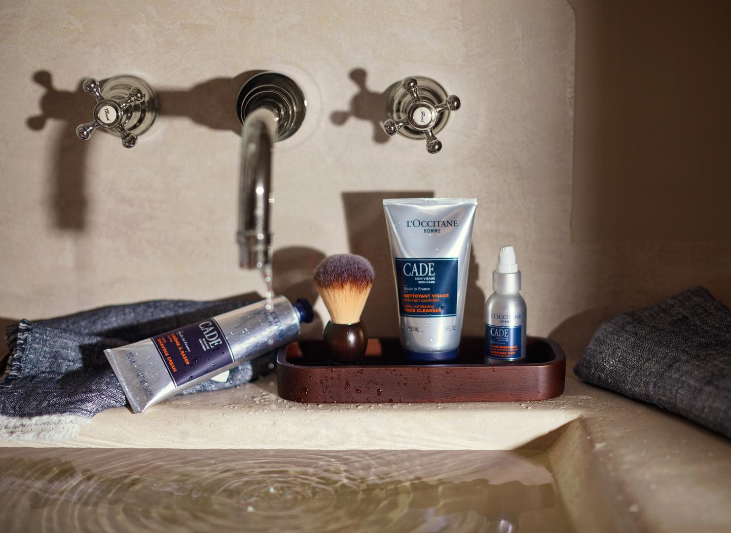 - Ukoliko se često brijete, i to veliku površinu lica, ne možete pogriješiti s nježnim gelom za brijanje i kremastim balzamom poslije brijanja. L’Occitane Balzam poslije brijanja Cade obogaćen je karite maslacem koji štiti i obnavlja kožu. Ako ste izrazito praktičan tip osobe, i za brijanje i poslije brijanja možete koristiti isti proizvod – novi Višenamjenski balzam Cade.