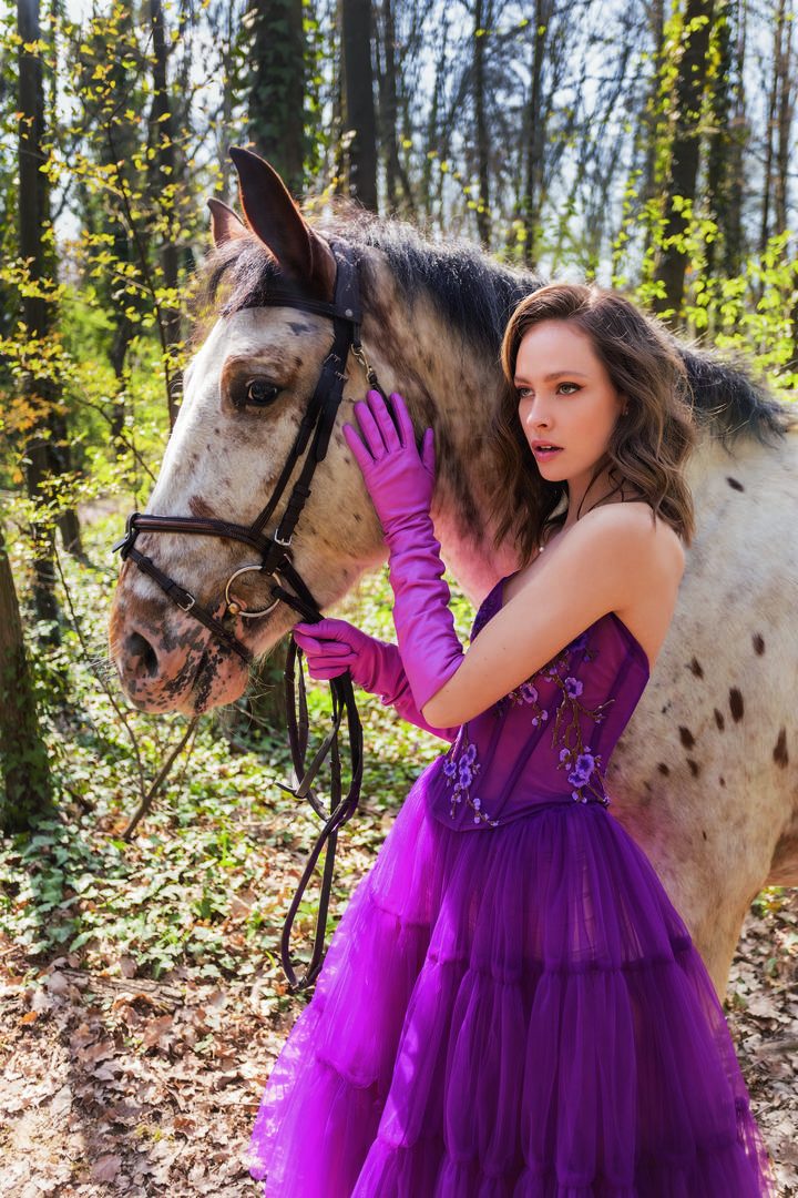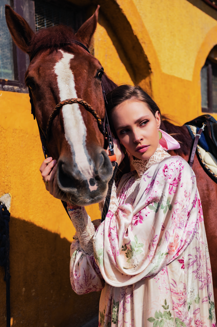 Modni editorijal snimali smo na nevjerojatnoj lokaciji Konjičkom klubu Hiperion, oazi zelenila i prirode na samo 10 minuta od centra Zagreba. Kreacije naših poznatih dizajnera, poput ELFS-a, Matije Vuice, Krie Design i mnogih drugih posebno su zablistale u ovom čarobnom ambijentu. Zvijezda editorijala Leonarda Zeba, naš najtraženiji model, savršeno se snašla na snimanju s konjima, što nije bio nimalo jednostavan zadatak.