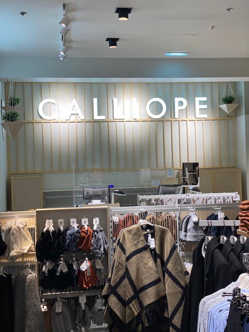 Brend nudi izniman dizajn za muškarce i žene u dobi od 25 do 40 godina koji se žele modno odijevati, ali bez pretjeranosti. Kupci imaju priliku uživati u jedinstvenom iskustvu kupnje u specijaliziranoj trgovini s minimalnim i suvremenim dizajnom, a Calliope ponuda u Westgateu jedinstvena je jer po prvi puta u Hrvatskoj uz žensku kolekciju nudi i mušku i dječju kolekciju.
