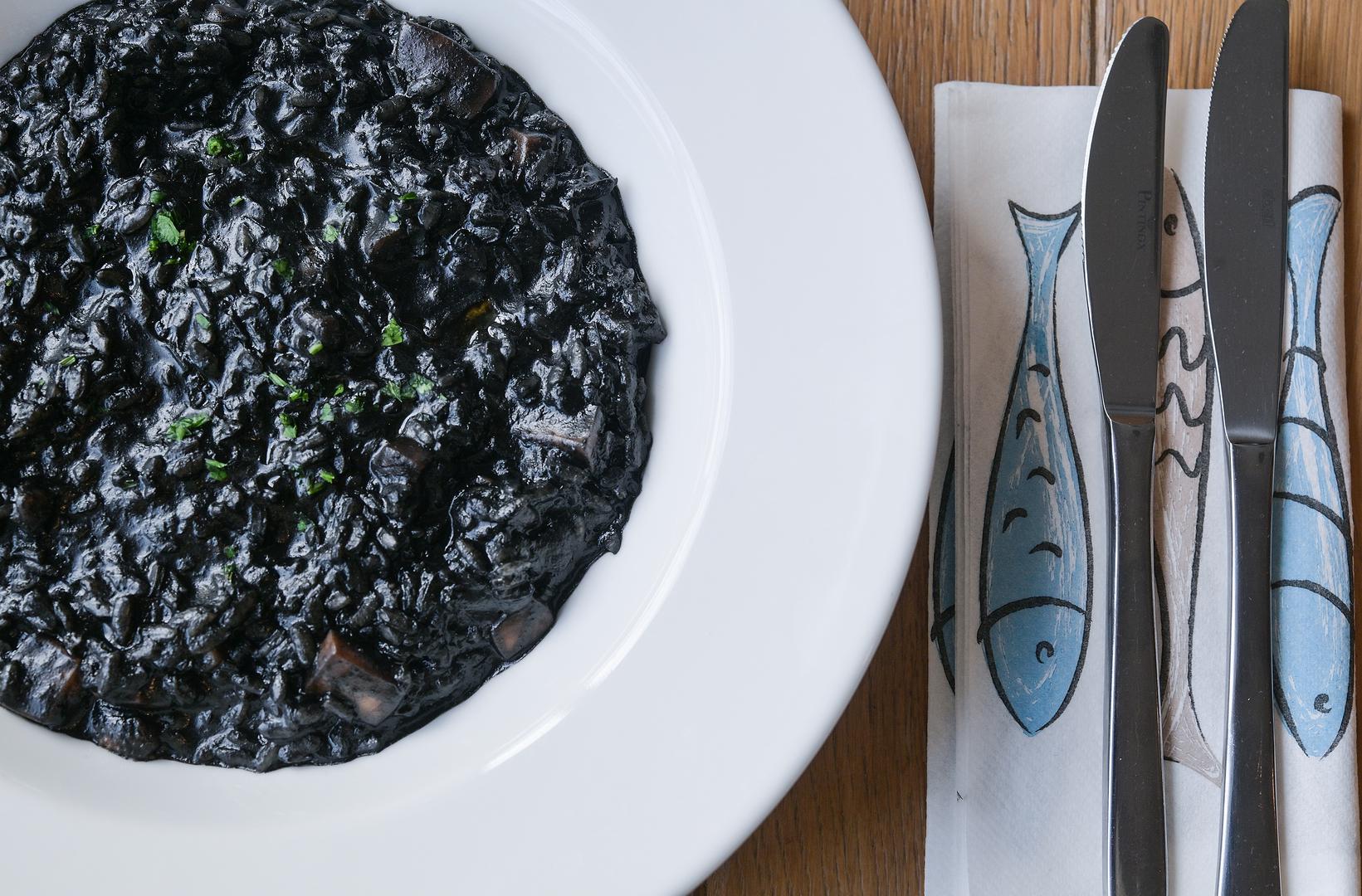 Na tanjuru gof na žaru, riba se ovdje peče na čistom žaru, na drvenom ugljenu, ne priprema se na ploči, a stiže i crni rižot od jadranske sipe. – U pripremi crnog rižota od sipe ključan je temeljac jer samo crnilo ne daje željeni okus. U temeljac, osim sipe, idu i luk, mrkva, celer... – govore u kuhinji.
