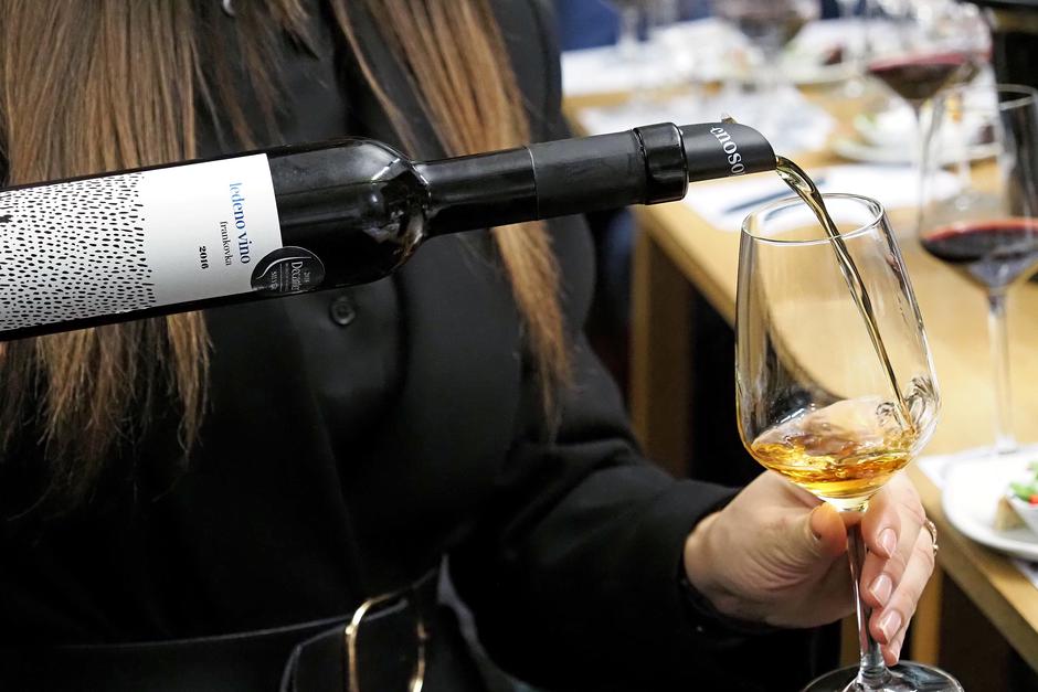 I za kraj, jedno predikatno vino, naravno, od frankovke. Već je dovoljna preporuka da je Ledeno vino berbe 2016. na Decanteru 2018. godine što je već dovoljno priznanje za prvo predikatno vino od frankovke. I doista je dobro, ne preslatko niti pregusto, pitko, lijepih aroma, vrlo skladno. Spomenimo još samo kako su jedan od zalogaja uz vina na degustaciji bile i čokoladne praline napravljene upravo s vinima od frankovke. Frankovka je očito na putu da dosegne onakvu slavu kakvu je trebala imati prije više desetljeća no nikada nije kasno, reklo bi se, a obzirom da se vrši i klonska selekcija, budućnost će biti osigurana.