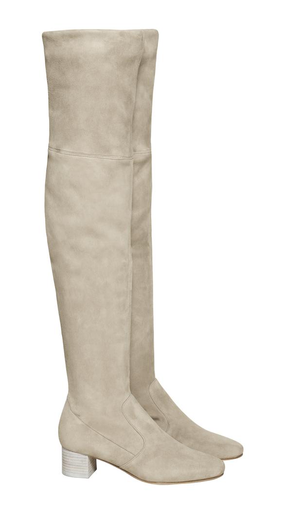 2. Čizme iznad koljena od brušene kože i u boji pijeska savršeno će izgledati i uz traperice, ali i u kombinaciji s lepršavom proljetnom haljinom.