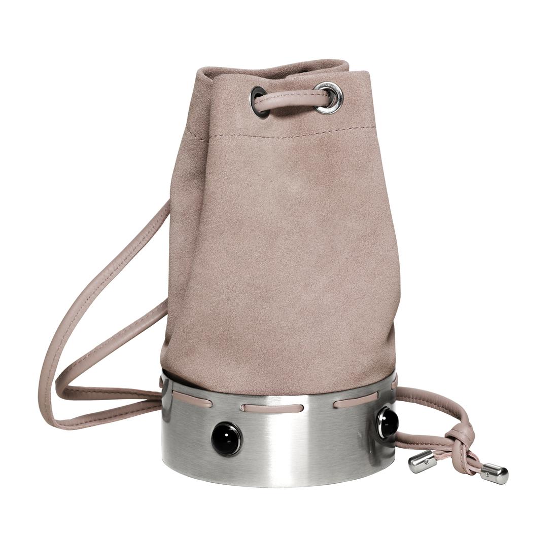4. Torbica praktičnog oblika koji podsjeća na vrećicu pravi je tendovski komad, a ovu od ružićastu brušene kože i s metaliziranim detaljima nosit ćete i danju i noću.