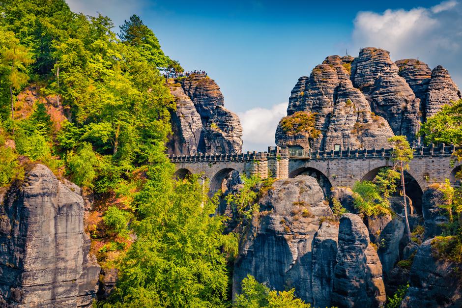 Pješačite među veličanstvenim kamenim formacijama na mostu Bastei. Na češkoj strani granice, dojmljivi kameni luk Pravcicka ima mističnu privlačnost zbog koje se pojavio u filmu "Kronike iz Narnije".