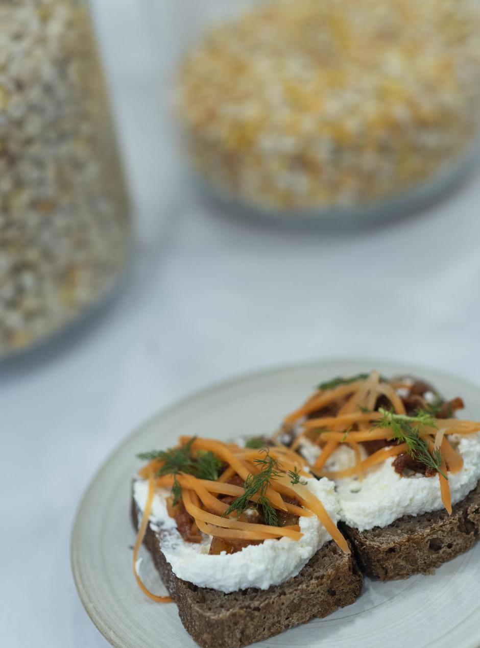 Kad je kruh u pitanju Tvrtko Šakota beskompromisno bira samo najkvalitetnije zrno pšenice iz biodinamičkog uzgoja koje zasad za potrebe njihove proizvodnje dolazi iz Austrije jer se u Hrvatskoj trenutačno ne može nabaviti. isto je i s organskim brašnom iz Italije koje je svega 20 posto zastupljeno u Tvrtkovim kruhovima, a većinu od 80 posto čini spomenuta svježe mljevena pšenica. Šakota jedini u Hrvatskoj radi i kruh od 3 vrste organskog kukuruza kojeg nabavlja na farmi u Hrvatskoj i to u vrlo ograničenim količinama. Da biste mogli isprobati ove kruhove na licu mjesta Tvrtko je osmislio vrlo ukusne i zanimljive kombinacije. Tako na tanjuru možete dobiti dvije kriške njihovog bazičnog kruha od svježe mljevene pšenice, na koji su iznimno ponosni, a radi se sa starterom od iste te pšenice. Kod ovog kruha što je u zrnu to je u kruhu, nema odvajanja mekinja niti pročišćavanja bilo koje vrste, objasnio je Tvrtko.