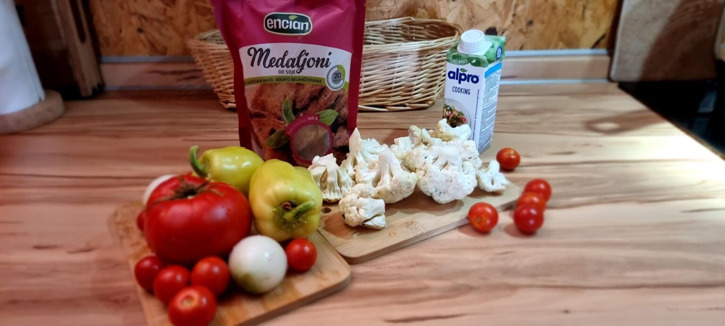 Sastojci: 100g sojinih medaljina, 200 ml sojinog vrhnja za kuhanje, 1 žličica himalajske soli, prstohvat muškatnog oraščića, 4 žlice nutritivnog (delikatesnog) kvasca, 1 manja glavica cvjetače