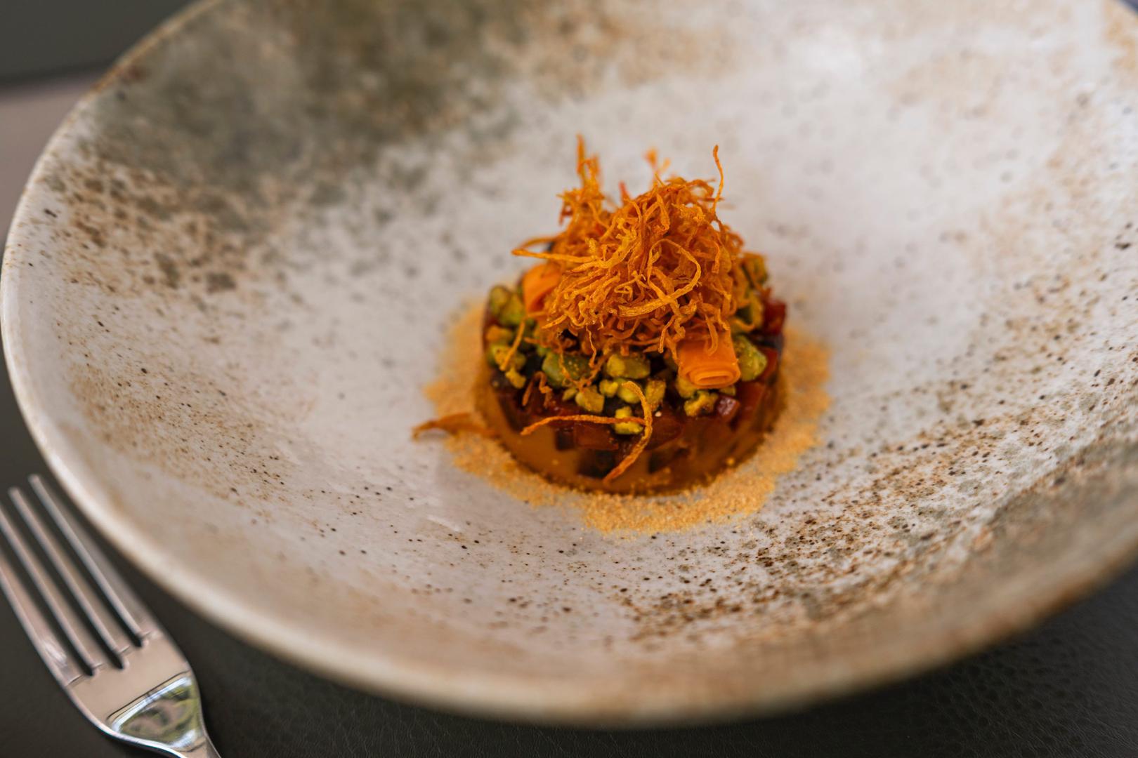 Vegetarijanski i veganski tanjuri nose jednaku pažnju i kreativnost – primjerice poriluk serviran u više tekstura ili kreativna reinterpretacija mrkve u četiri varijante, koji pokazuju kako se jednostavna namirnica može pretvoriti u pravo gastronomsko iznenađenje. I zaista, kad čujete mrkva u četiri varijante, malo se zamislite, no kad jelo dotakne nepce, shvatite da je strah potpuno neopravdan – različite teksture, hrskavost i prženi pinjoli dat će ovom predjelu odličan šmek i rijetki će prepoznati onaj tipičan okus mrkve. Upravo su takva veganska jela mladom chefu, kaže, pravi izazov.