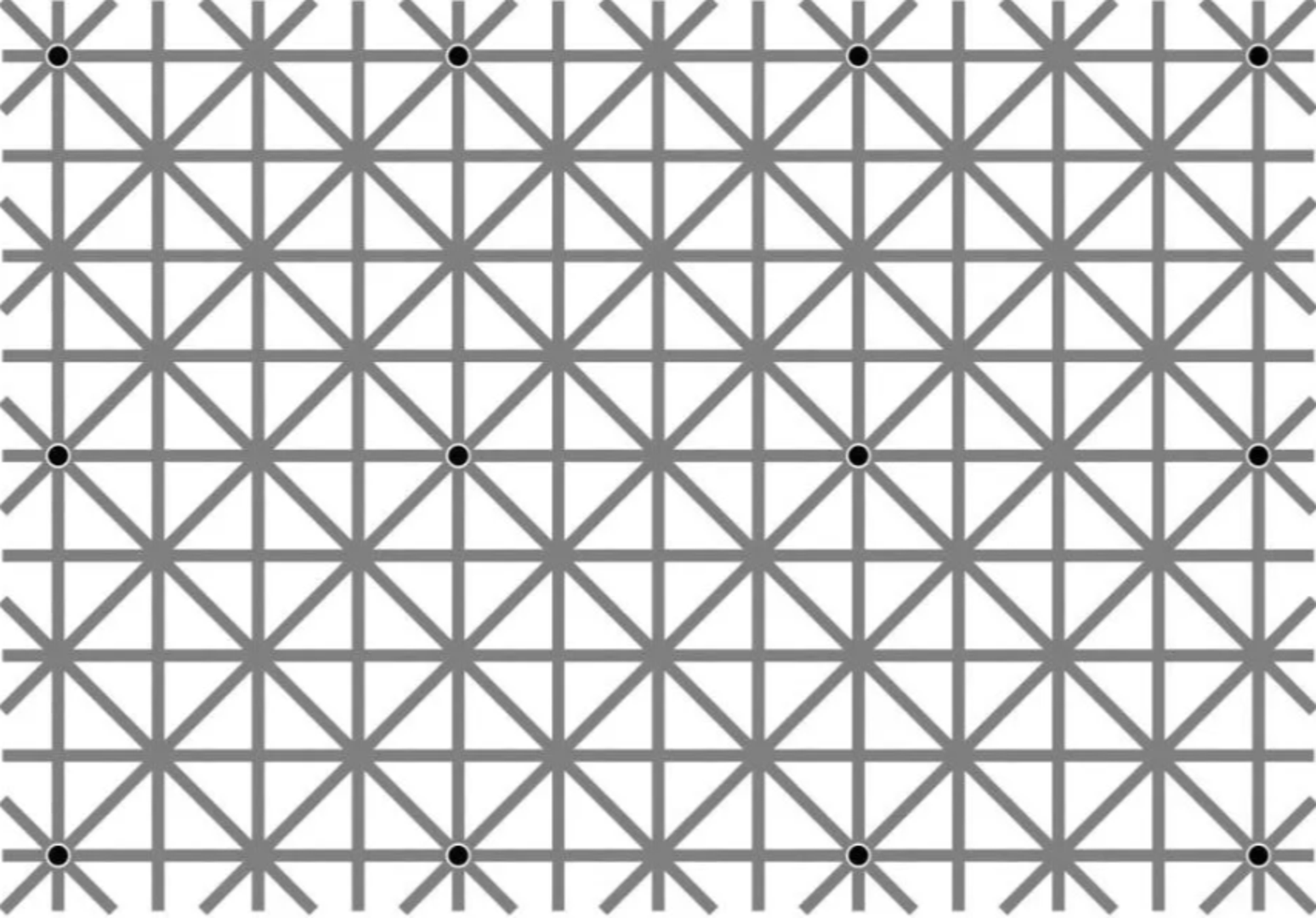 Iluzija se događa kada mozak pogađa što se događa na slici dok vi gledate u samo jedan njezin dio. Točke su postavljene na sjecištu nekoliko sivih linija. Kad oko vidi ovo raskrižje u svom perifernom vidu, stvara se iluzija malog, blijedoga kvadrata, a ne onog što je zapravo na slici.