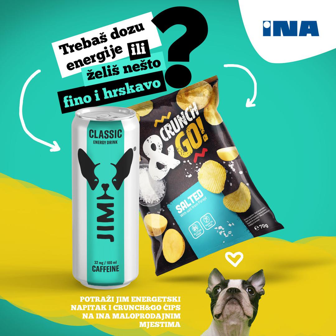 Naime, INA na svojim maloprodajnim mjestima u Hrvatskoj dodatno proširuje ponudu i uvodi nove proizvode – čips Crunch&Go kao savršenu grickalicu za kupce u pokretu i energetski napitak Jim za novu dozu energije na svakoj etapi putovanja.
