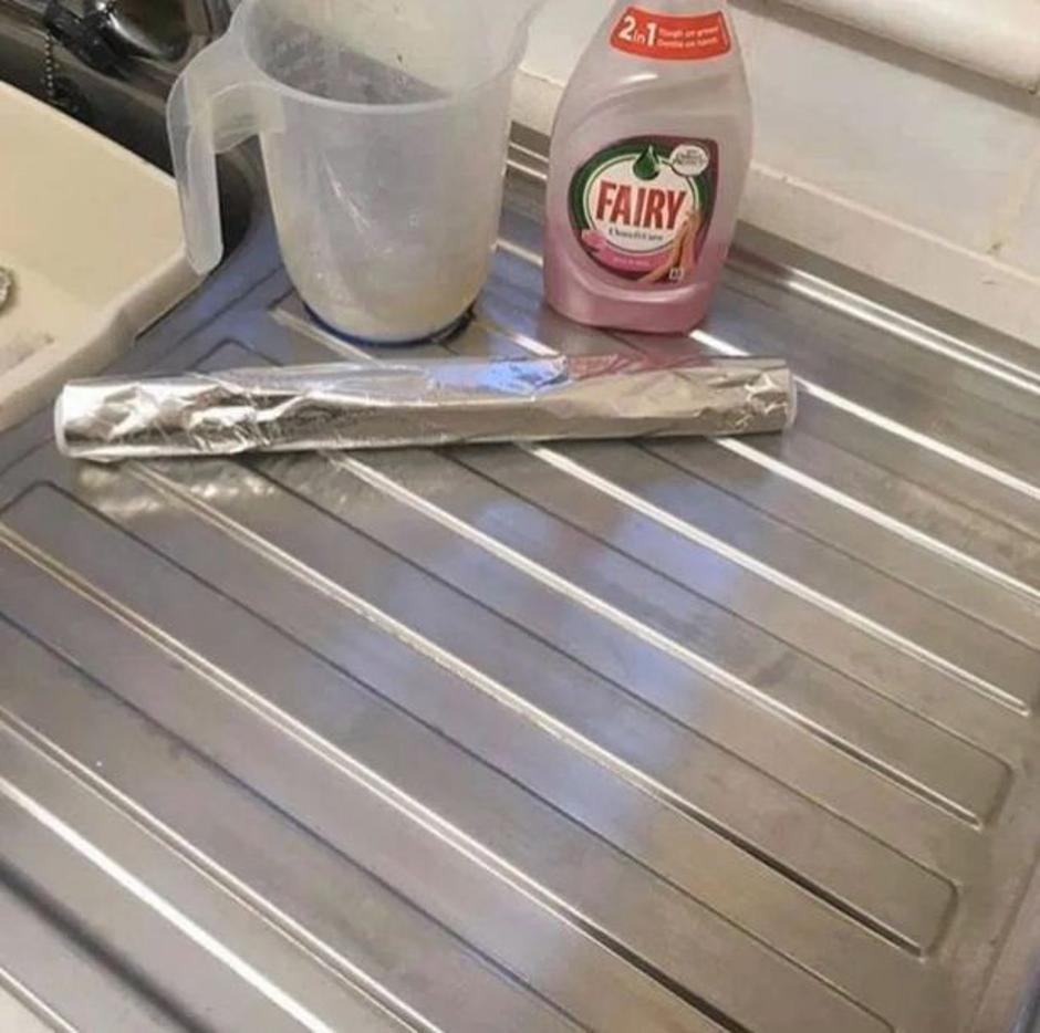 Sophie Darragh podijelila je svoj trik u Facebook grupi Hinch Army Cleaning Tips, a pokazala je fotografije prije i poslije pranja metalnog sudopera i stolca. Napisala je: “Topla voda, malo sapuna za suđe i aluminijska folija. Otrgnite dio, zgužvajte i oribajte. Skida sve bez grebanja!”.