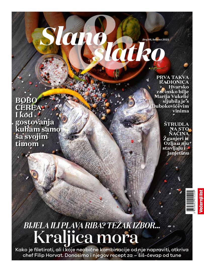 Fićo Horvat u ovom broju Slanog & slatkog gost je autor, a upravo je on obradio temu broja – ribu, ali i otkrio tehniku pripreme i recepte za neka svoja jela od ribe (i od već spomenutog šiš-ćevapa od tune) te objasnio kako savršeno filetirati ribu. Vinska promotorica Marija Vukelić donosi priču o sljubljivanju vina s hvarskim začinskim biljem, tu je i priča o poznatoj jaškovskoj štrudli i obitelji Žganjer te Štrudlafestu, a kod Žganjera smo i snimili video u kojem detaljno objašnjavaju tehniku pripreme.