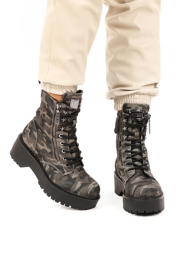 Ova sezona bit će ponovno u znaku gležnjača, koje su ovog puta malo robusnije i podsjećaju na vojničke čizme, ali zbog dodataka kao što su svjetlucavi kamenčići na vezicama, očarat će i nešto nježnije, romantičnije duše. Pažnju svih onih koji se usude biti odvažniji pri odabiru obuće zasigurno će ukrasti gležnjače u maskirnom uzorku, trendu koji nikada nije izašao iz mode, ali će ove sezone biti još istaknutiji. Kožne gležnjače Guess obuća su uz koju si možete priuštiti brojne modne kombinacije, bez obzira na vaš stil odijevanja.