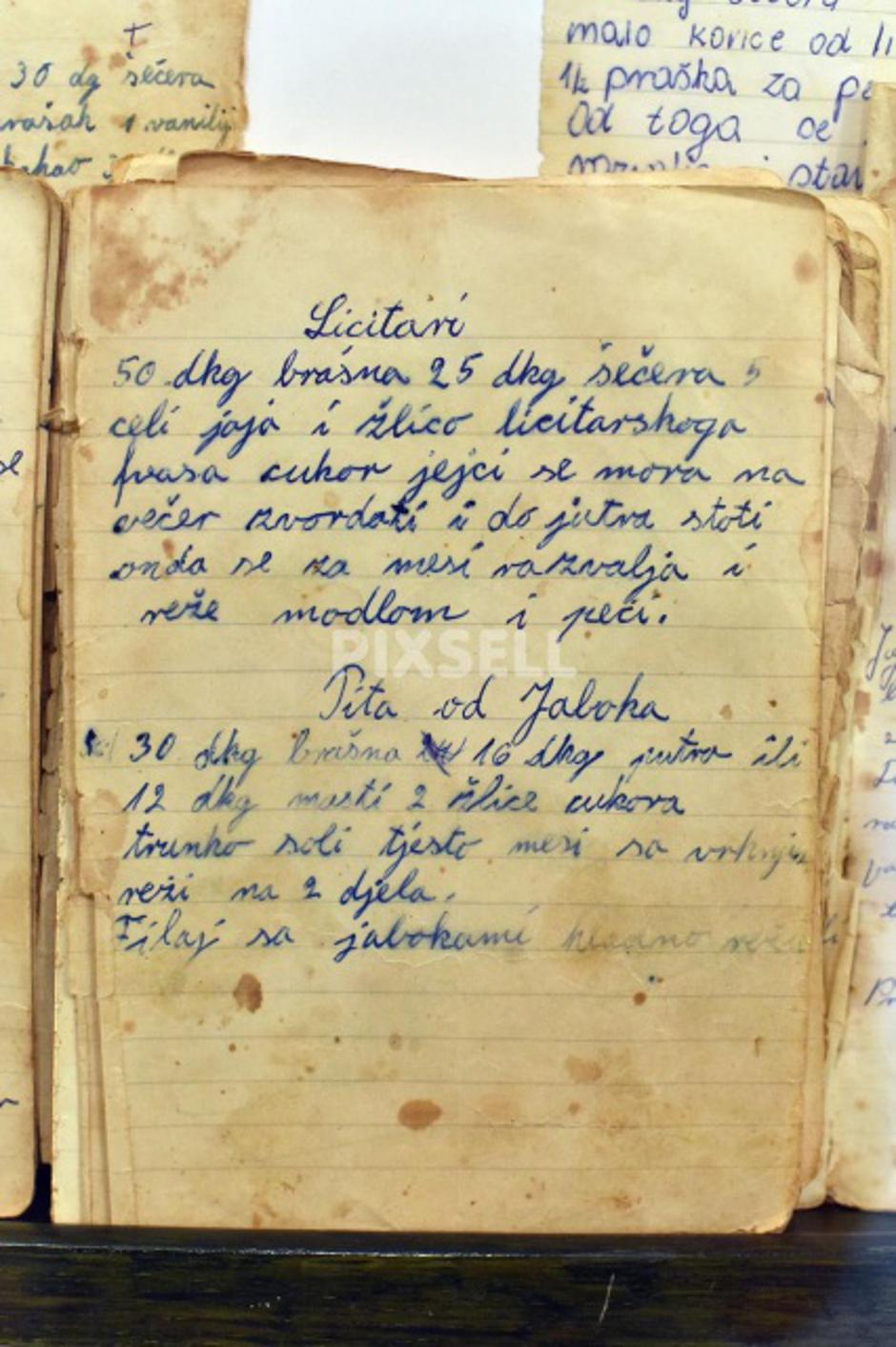 Najstarija izložena tiskana kuharica izdana je 1926. godine. Izložene su, uz ostale, knjige "Praktična kuharica" Eveline Deutsch, koja je napisala da "o hrani ovisi i zdravlje obitelji", "Domaća kuharica" Ivanke Karačić, "Knjiga za svaku ženu"... Među izdvojenim receptima su recepti za "licitare", "breskve", "štanglice", "berlinske šnite", pitu od jabuka i druge slastice. Zanimljiv je i naziv kolača "guskine noge".
