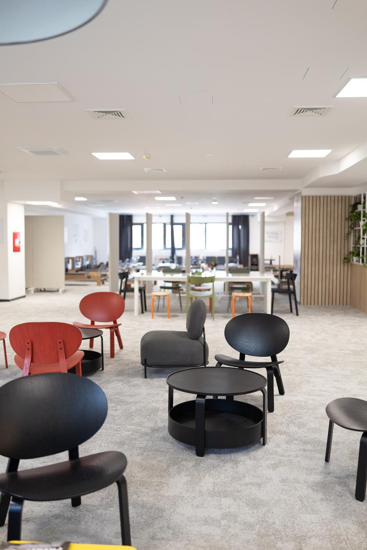 FLO:R je prostor u kojem se usporava, povezuje i osjeća pozitivna energija svakog trenutka. Interijer spaja prozračnu bjelinu i prirodno drvo s pažljivo odabranim teksturama uz odvažne kolorističke naglaske, čime stvara ambijent koji je umirujući, a istovremeno puni energijom. Lounge zona zamišljena je kao dnevni boravak, mjesto gdje je jednako prirodno popiti kavu (besplatno), prolistati knjigu ili započeti razgovor.