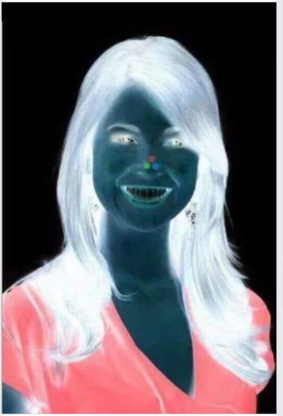 Fotografija glave žene provučena je kroz popularni negativ, a naše oči vide boje koje se ne nalaze na fotografiji ako se predugo gleda u nju. Naime, potrebno je gledati 30 sekundi u fotografiju i potom usmjeriti pogled na bijeli zid i pokazat će se ista žena, ali ovoga puta sa smeđom kosom.