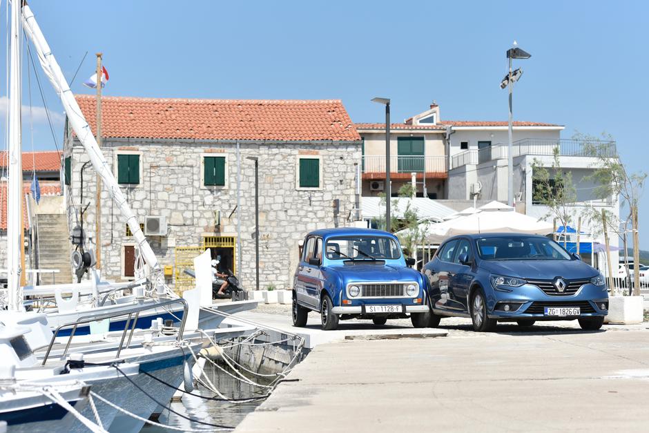 U Poratu, kafiću, srećemo poznato lice. Hrvoja Marinčića. I on, ne biste vjerovali, projektira brodove. No, lako za brodove, poznat je po tome da ima – ušminkani Renault 4. Ljepotna. Igrom slučaja, i mi u Renaultu. Meganeu. Boja ista. Samo im je – 30 godina razlike. Jedan stariji, drugi mlađi.
