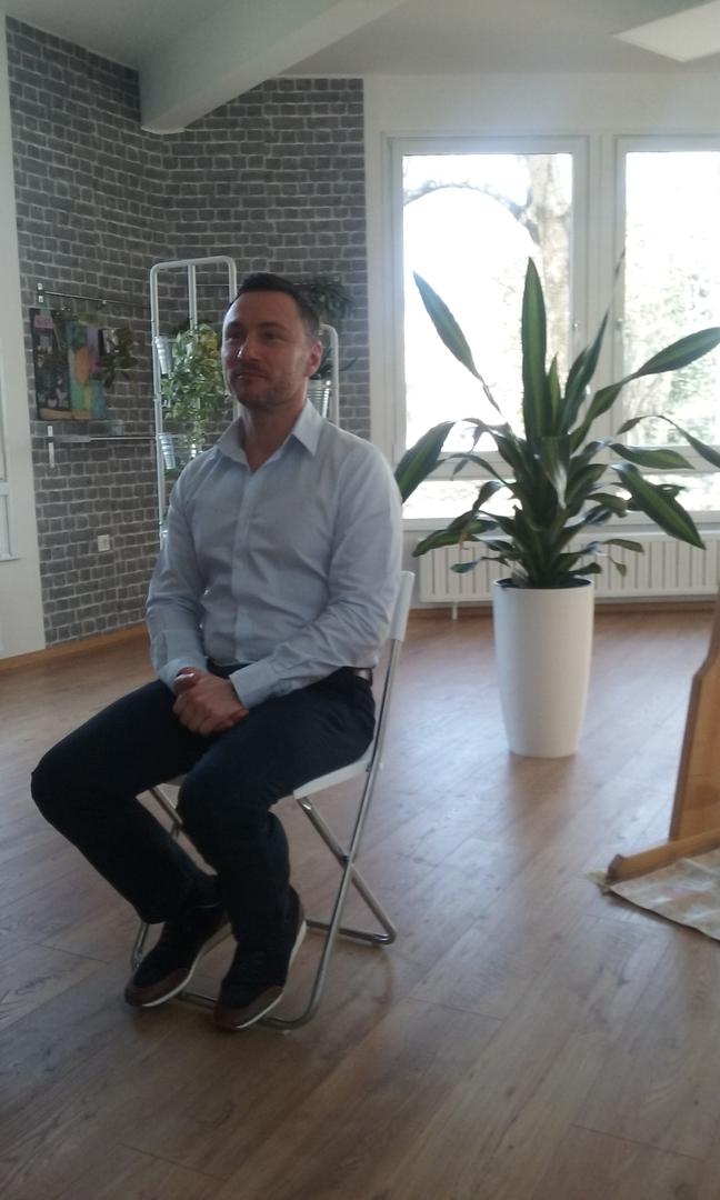 – Sjednite na stolac. Ako ste muškarac, naslonite lijevi dlan na desni ispred sebe, a ako ste žena, obratno. Ruke stavite na noge pred sobom, a noge ispružite lagano ispred sebe i nemojte ih držati prekrižene. Zatvorite oči i uz miris opuštajućih ulja opustite cijelo tijelo, od glave, preko vrata, kralježnice, trbuha, kukova do nogu i stopala. Kada ovaj postupak uvedete u dnevnu rutinu, naučit ćete se opuštati i izbaciti sve što se nakuplja tijekom dana.